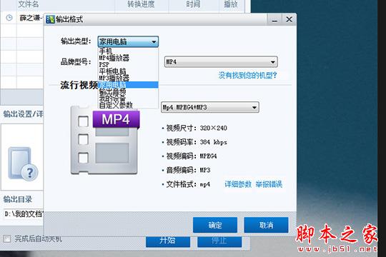 第四步:需要用戶在添加完視頻格式之后,會自動彈出輸出格式的界面,根據壓縮輸出的視頻選擇輸出類型,如果你想要在手機上播放,只需要選擇手機并調整品牌和型號即可,畢竟現在手機上也可以很方便的下載當前最熱的視頻,這里就不再多加討論了;這邊默認選擇“家用電腦”選項,這里選擇視頻輸出格式,格式默認為MP4,最后根據想要壓縮視頻的大小,點擊選擇下拉框中的“視頻格式”,最后點擊確定即可,如下圖所示: