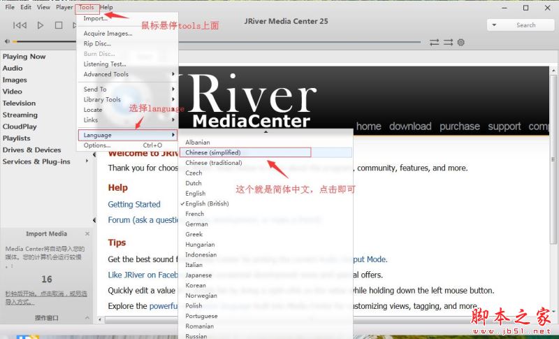 JRiver Media Center最新版本中文設(shè)置教程。由于JRiver Media Center播放器默認(rèn)是英文界面,對很多用戶造成了很多的麻煩,那么怎么才能把英文設(shè)置成中文呢?今天就由玩家朋友給大家分享一下中文設(shè)置的教程吧!