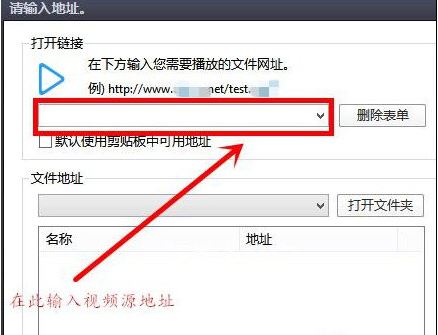 4.在軟件彈出的打開鏈接的操作框中輸入視頻源的地址鏈接,輸完后鼠標左鍵單擊界面下方“確定”按鈕即可。