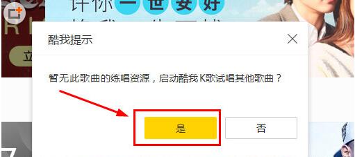 3、如果暫無此歌曲的練唱資源,可能會出現暫無此歌曲練唱資源的提示,用戶可以啟動酷我K歌試唱其他的歌曲,如果有此資源,就可以開始你的演唱之旅啦,如下圖所示: