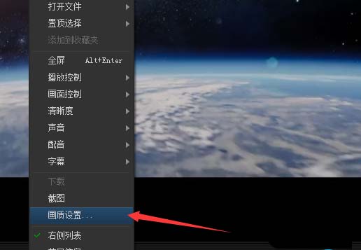 2、在PPTV播放器的右鍵操作,彈出了下拉菜單選中為畫質設置的選項。