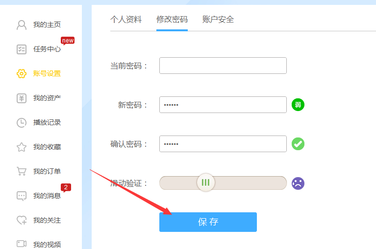 6、新密碼和確認密碼輸入完成之后,點擊保存按鈕,對數據上保存設置。