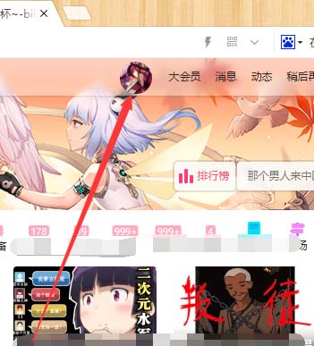 2、然后將鼠標(biāo)光標(biāo)移到B站頭像處,不用點(diǎn)擊,移到即可