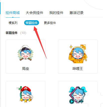 8、假如你的分數達到85分,可以點擊掛件商城下的【答題掛件】選擇你喜歡的頭像掛件