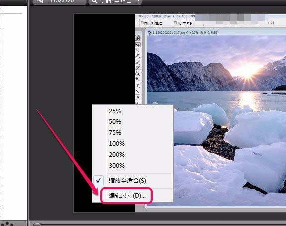 3、我們在黑色背景上面單擊鼠標右鍵,選擇“編輯尺寸”命令。