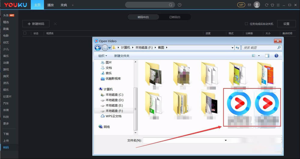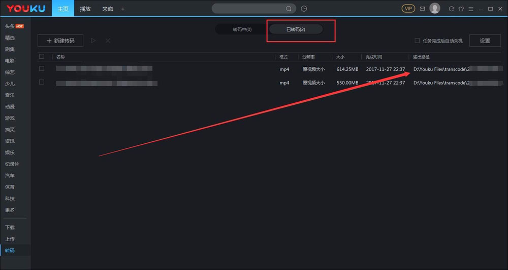1、打開優酷客戶端,點擊左側的功能“轉碼”標簽;