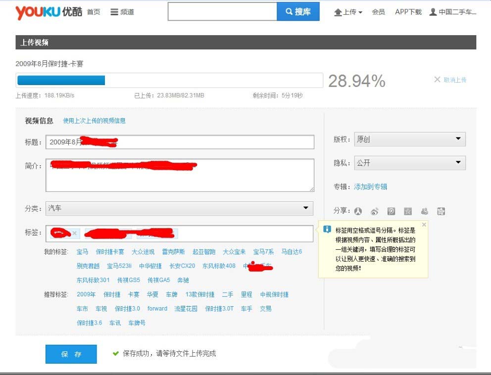 3、上傳的時候,我們的視頻說明的文字,不要和之前的一樣