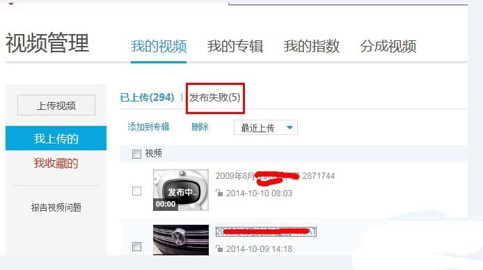 5、對于那些發布失敗的視頻,我們可以在“發布失敗”的項目里面找到列表。