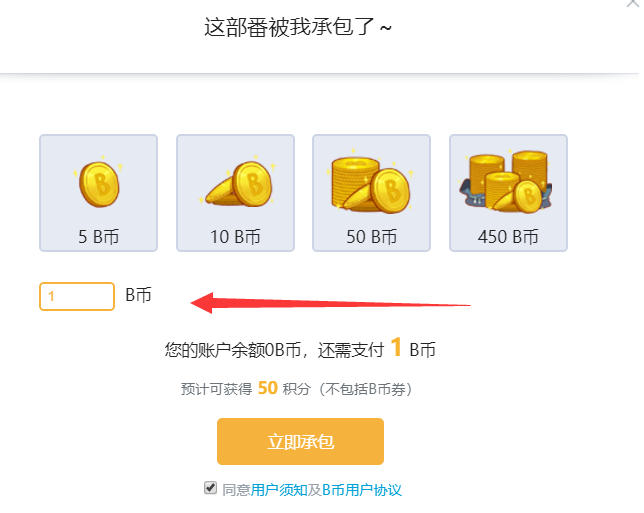 5、在如圖所示的位置可以自定義承包的金額,最低是1B幣。
