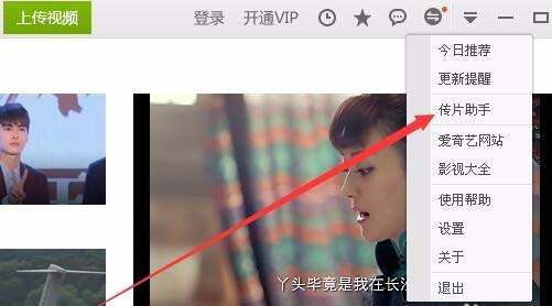 7、接下來我們再次點擊客戶端右上角的選項按鈕,在彈出菜單中選擇“傳片助手”菜單項
