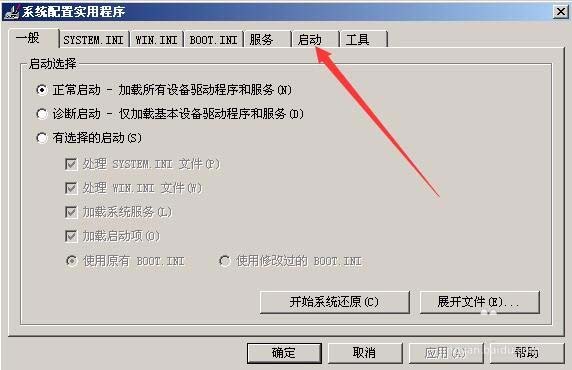 5、在打開的系統配置實用程序窗口中,點擊上面的“啟動”標簽