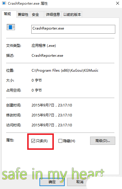 4、保存好后右鍵該文件,選擇屬性,在屬性對話框里勾上只讀屬性