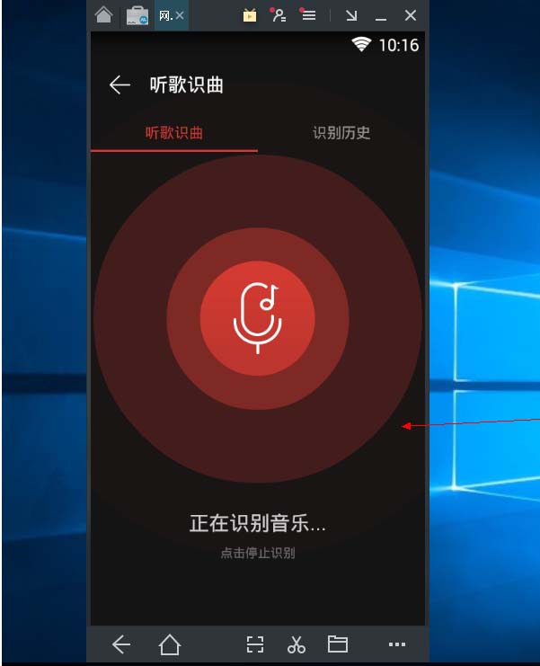 8、這時候和手機上一樣,聽歌識曲功能開啟,可以識別你電腦揚聲器或周邊播放的音樂了。如下圖所示