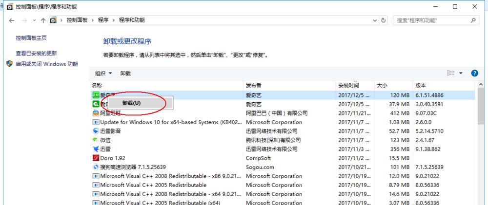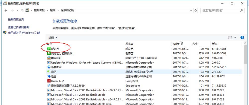 2、找到你的愛奇藝軟件,將光標移到愛奇藝