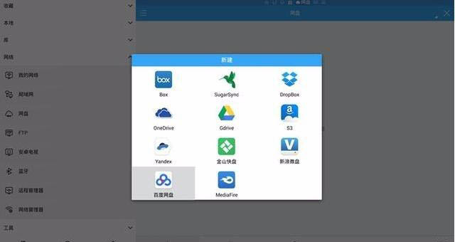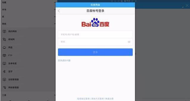 3、點最底部菜單欄里的“新建”——“百度網盤”,然后輸入你的百度網盤賬號密碼登陸。(如果遙控器無法選擇控制,可以用鼠標完成操作)