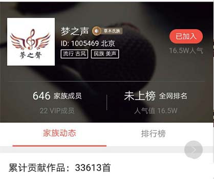 2、家族內積累核心成員1000人以上,核心主唱100人以上。