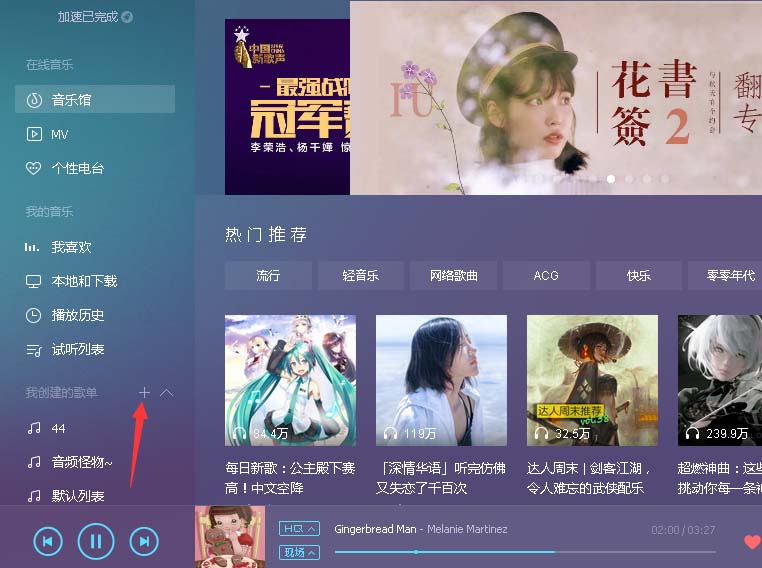 2、首先點擊左邊的小加號選擇創建新歌單,然后給自己的歌單取一個自己喜歡的名字。