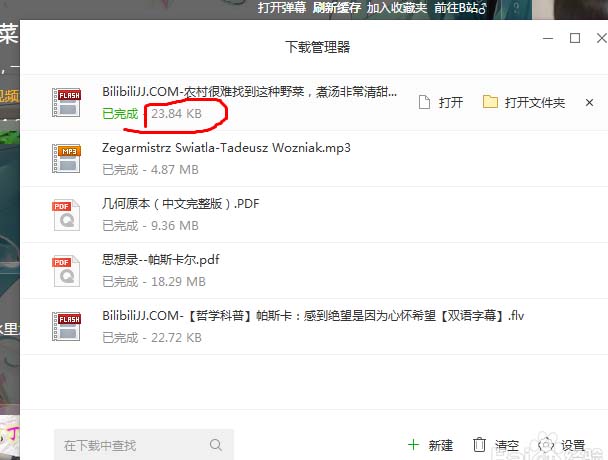 2、但是有些時(shí)候下載的視頻是二十多K的,無法波放的“視頻文件”