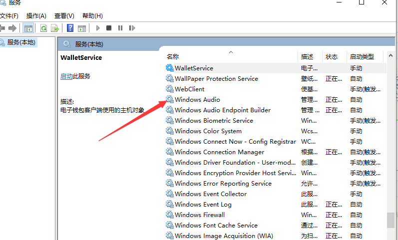 4、找到Windows Audio右鍵然后選擇-重啟??焖僬业絯indows audio 的方法是,再打開本地服務之后隨便選擇一個服務然后輸入W就行了。