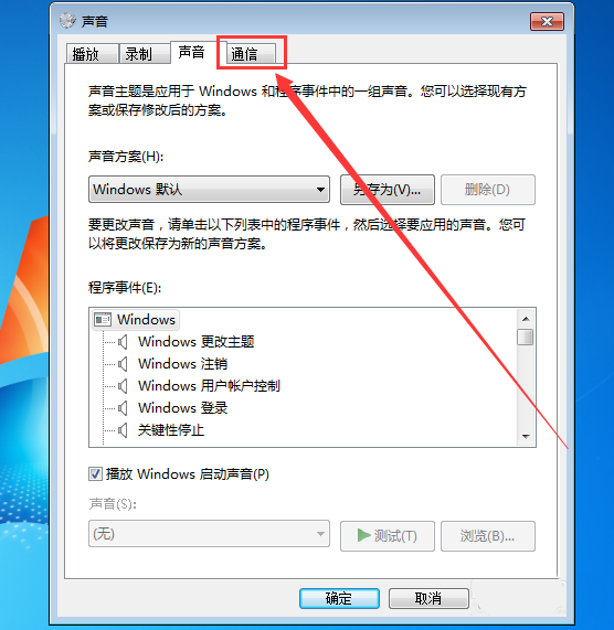 3、打開聲音設置窗口之后,我們點擊導航欄上的“通信”選項 如圖