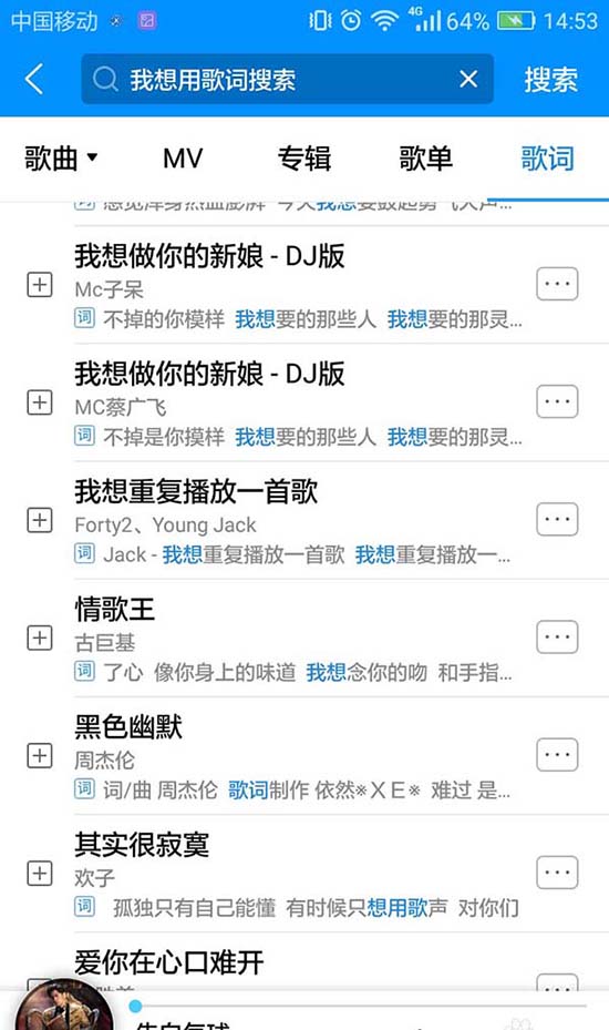 6、因為相互類似的歌詞很多,所以可能你需要找一找,或者試聽,才能知道你要找的到底是哪一首歌。