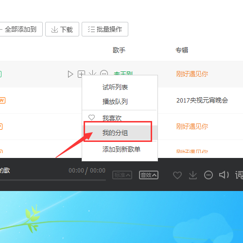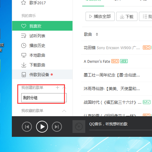 6、我們下次再聽這個歌曲的時候,就可以通過分組里面去找到這首歌了。