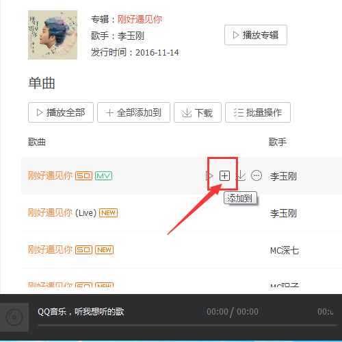 4、當我們聽到要保存的歌的時候,我們可以點擊后面的加號。