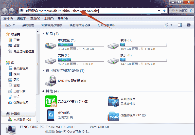 3、將復制內容粘貼到我的電腦,如圖所示位置,點擊回車【Enter】鍵,打開后我們找到下載文件,