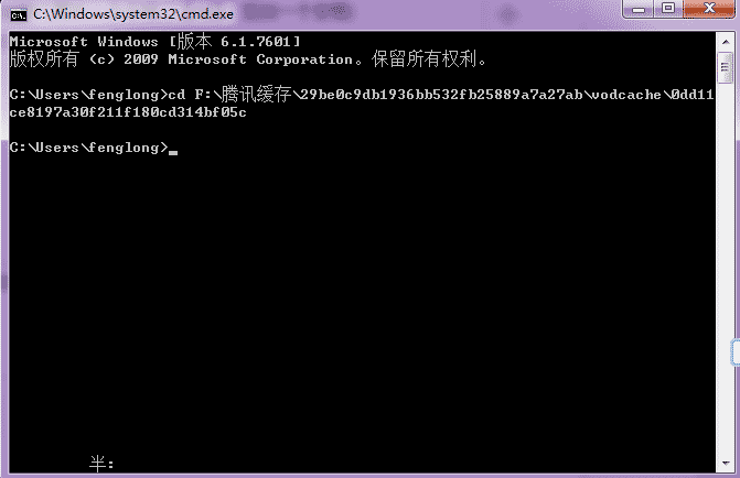 4、繼續輸入命令【F:】(因為現在演示的文件夾在F盤,所以我輸入“F:”,如果大家的指定文件夾在D盤,則輸入“d:”)輸入完后按下【Enter】鍵,即可看到如圖所示界面: