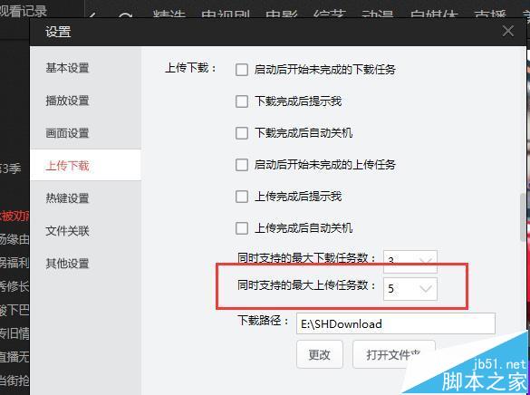 6、在上傳下載選項右側窗格中,找到“同時支持的最大上傳任務數”選項并將此選項修改成我們需要的數量即可。如圖所示;