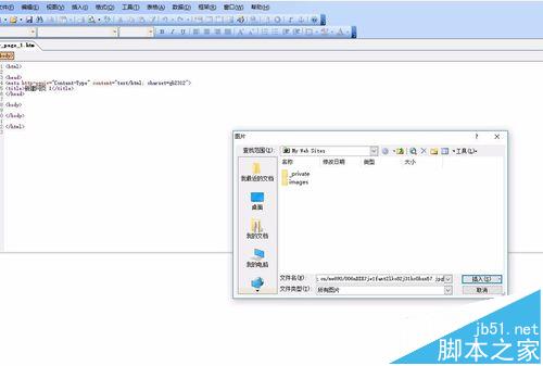 5、打開網頁編輯軟件(FRONTPG)里會出現這些代碼 點第9行 插入-圖片-來自文件 輸入框里Ctrl v黏貼之前微博圖片復制好的圖片地址
