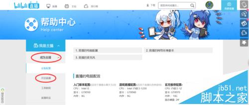 3、進入直播幫助中心之后,大家就可以很輕易地看到,頁面的左側有“成為主播”的字樣。