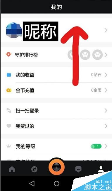 進入頁面后,點擊底端最右面的個人主頁標志;進入個人主頁后點擊住上面一欄頭像和昵稱的地方。