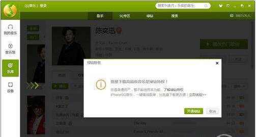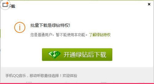 圖1 騰訊QQ音樂非綠鉆會員無法批量下載音樂歌曲?