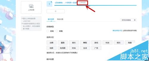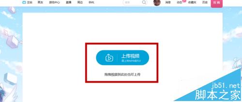 3、登錄后點擊右上角“投稿”按鈕,在投稿界面選擇“上傳視頻”按鈕。