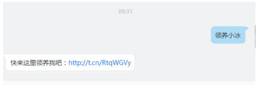4、在聊天框輸入“領養小冰”,小冰會回復一個鏈接地址,點擊進入