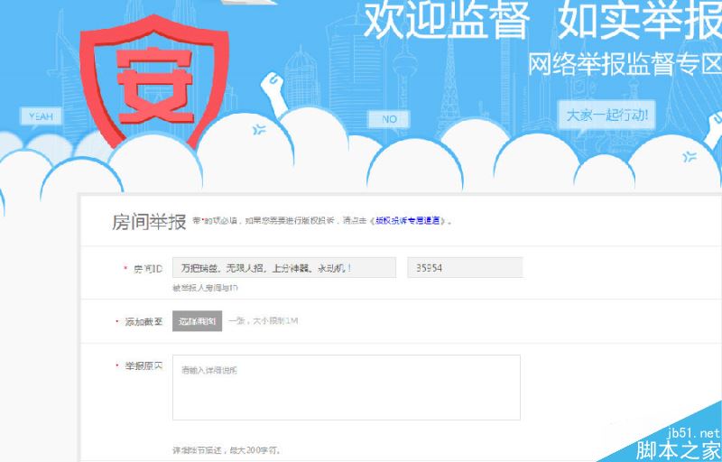 5.點擊舉報房間會轉到另一網頁輸入相關的情況提交就可以進行舉報了,