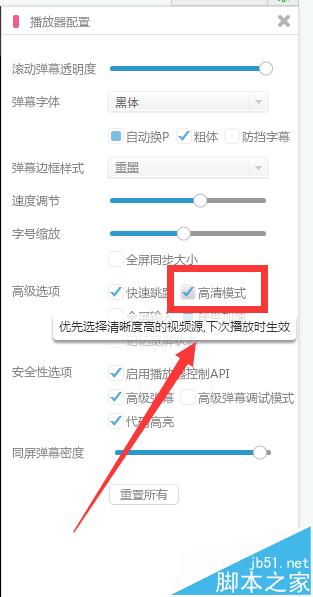 5、勾選高清模式,以后每次看視頻會優先加載清晰度高的視頻。
