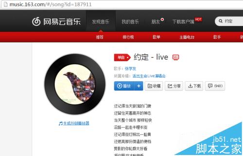 5、進入歌曲頁面后,觀察地址欄。那里最后寫的"id=187911"就是歌曲的id。