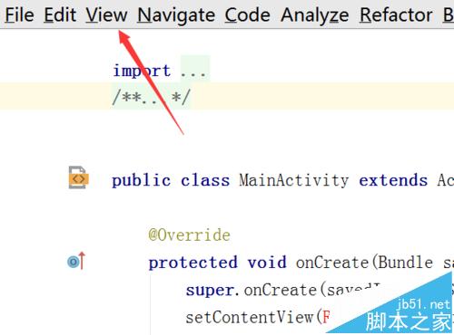1、進行點擊Android studio的菜單中的“view”的選項菜單。