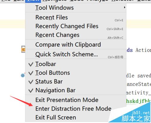 進行使用的Android studio中進行使用的編輯器中都是需要對代碼進行演示給人看的,就需要對代碼的進行使用代碼的演示的功能進行開啟代碼的演示的功能,就可以對代碼很多做演示,用于切換代碼的演示的不同的功能。
