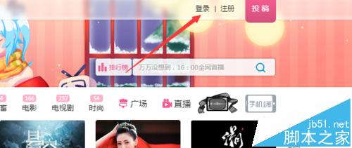 2、進入嗶哩嗶哩首頁后,我們可以看到有個登錄字樣,我們點擊選擇登錄