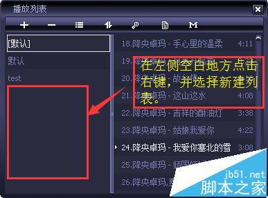 2、在播放列表左側(cè)空白地方,點(diǎn)擊右鍵,選擇“新建列表”