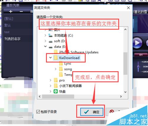 5、在彈出的瀏覽框,選擇本地存放音樂的文件夾,然后點(diǎn)擊確認(rèn)。