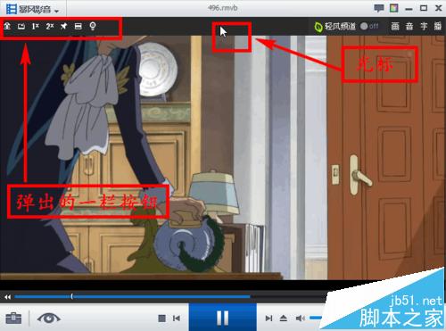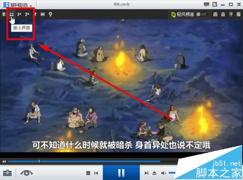 4、怎樣可以再盡量縮小窗口呢?方法就是把鼠標(biāo)光標(biāo)移動(dòng)到暴風(fēng)影音窗口上邊框附近,此時(shí)就會(huì)彈出一欄按鈕,如下圖所示: