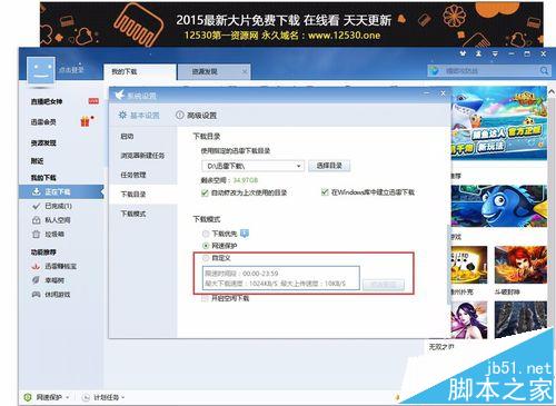 5、將最大下載速度設定到特定值(例如家里的帶寬是10M光纖或者寬帶,設置為1024KB/S,20M設置2048KB/S,以此類推),建議大家設置到家庭帶寬60%-80%為最佳,給予剩下的流量空間做別的使用;最大上傳速度設置為10KB/S。上行這里一定要設置,不然不會有很大的變化。