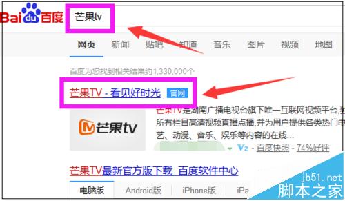 1、百度上搜索“芒果tv”,點(diǎn)擊搜索出來(lái)的第一個(gè)“芒果tv—看見好時(shí)光官網(wǎng)”。
