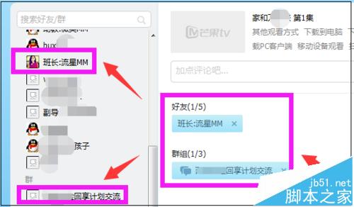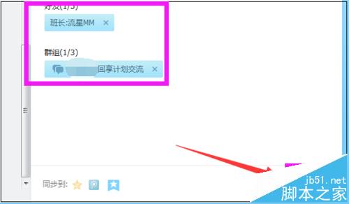 6、點(diǎn)擊QQ好友和QQ群后,此QQ好友和QQ群的名稱就出現(xiàn)在右側(cè)的空白處,選擇好后點(diǎn)擊右下角的"發(fā)送”。