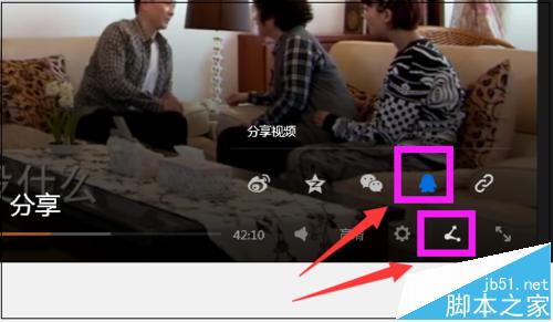 2、打開一個(gè)自己喜歡的電視劇,將鼠標(biāo)放到電視劇上,會(huì)在屏幕右下角彈出分享按鈕,點(diǎn)擊“分享按鈕”,然后點(diǎn)擊“QQ企鵝圖標(biāo)”。