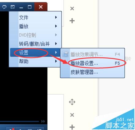2、在【主菜單】下,點擊選擇【設置】--【播放器設置】選項。(如圖所示)